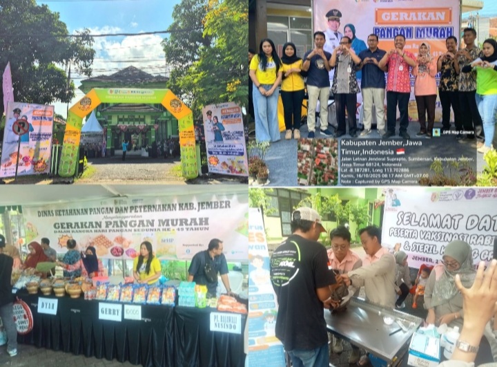 Hari pangan sedunia setiap tanggal 16 Oktober diperingati dikantor Dinas Ketahanan Pangan dan Peternakan (DKPP) Kabupaten Jember dengan menggelar “Gerakan Pangan Murah” di jalan letjen Suprapto No.139 Kebonsari Sumbersari, Kamis 16/10/2025.